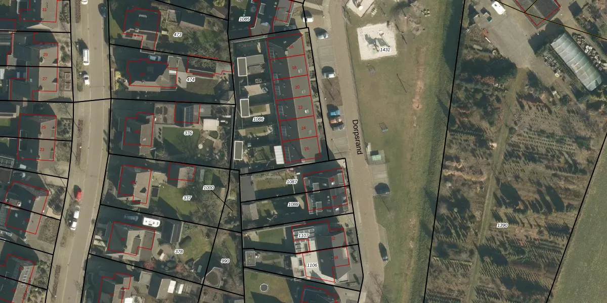 Het perceel waarop Dorpsrand 26 staat heeft een oppervlakte van 1275 m². Dit is een zeer groot perceel. De perceeloppervlakte wordt geregistreerd door het Kadaster. Gedetailleerde informatie over de maten van dit perceel kunt u vinden in het rapport Kadastrale kaart met maatvoering van Dorpsrand 26.
