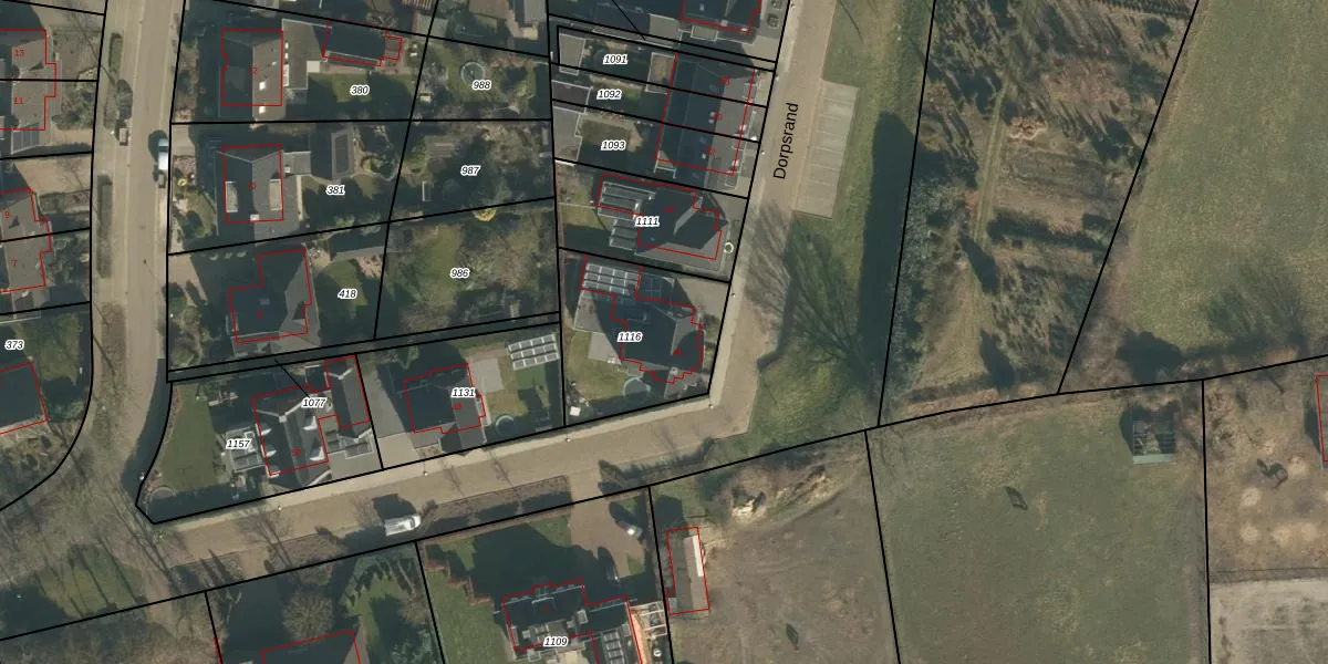 Het perceel waarop Dorpsrand 46 staat heeft een oppervlakte van 520 m². Dit is een groot perceel. De perceeloppervlakte wordt geregistreerd door het Kadaster. Gedetailleerde informatie over de maten van dit perceel kunt u vinden in het rapport Kadastrale kaart met maatvoering van Dorpsrand 46.