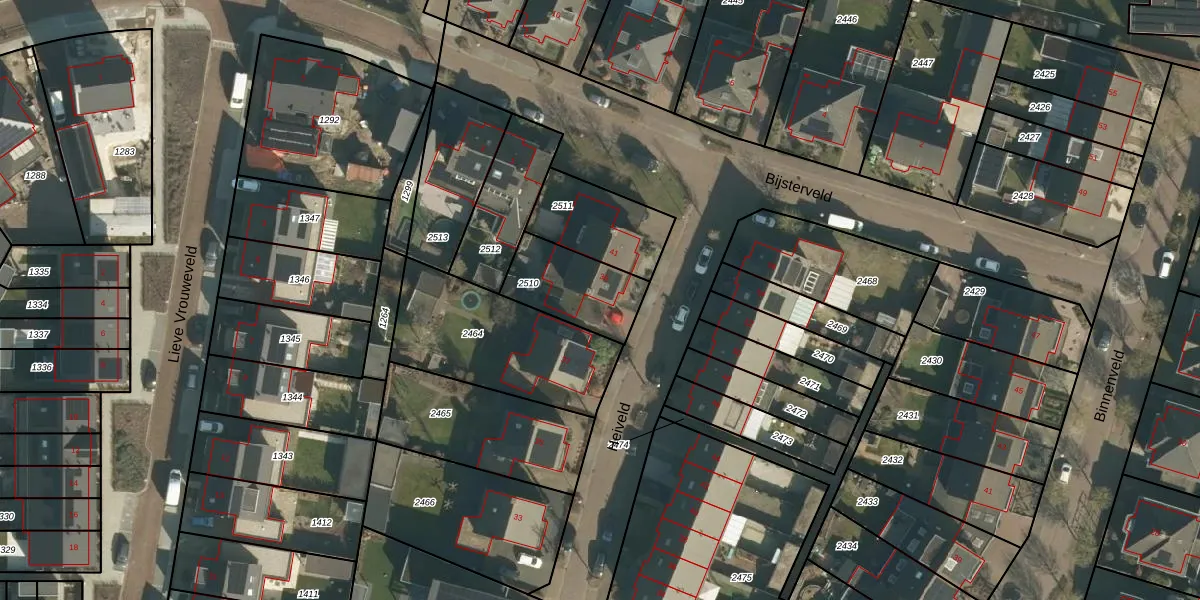 Het perceel waarop Heiveld 39 staat heeft een oppervlakte van 256 m². Dit is een middelgroot perceel. De perceeloppervlakte wordt geregistreerd door het Kadaster. Gedetailleerde informatie over de maten van dit perceel kunt u vinden in het rapport Kadastrale kaart met maatvoering van Heiveld 39.