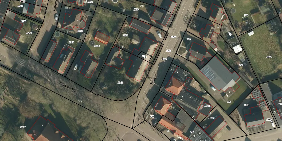 Het perceel waarop Heuvel 1 staat heeft een oppervlakte van 1040 m². Dit is een zeer groot perceel. De perceeloppervlakte wordt geregistreerd door het Kadaster. Gedetailleerde informatie over de maten van dit perceel kunt u vinden in het rapport Kadastrale kaart met maatvoering van Heuvel 1.