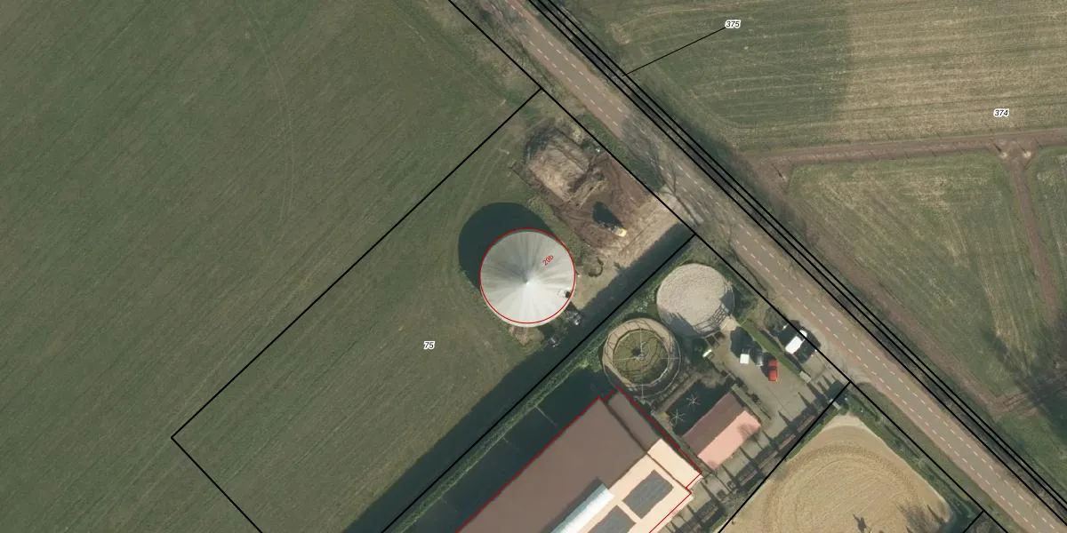 Het perceel waarop het adres ligt is NTR00-G-75. De afkorting 'NTR00' staat voor kadastrale gemeente Nistelrode. Het perceel is kleiner dan gemiddeld in Nistelrode. Het perceel is 3840 m² groot, terwijl het gemiddelde ligt op 5101,48 m². Het kleinste perceel in de kadastrale gemeente is 0 m² groot. De grootste perceeloppervlakte is 85,7 ha. Dit is het enige adres dat aanwezig is op het perceel. De huidige grenzen van het perceel zijn digitaal in de Basisregistratie Kadaster (BRK) geregistreerd op 03-10-2007.