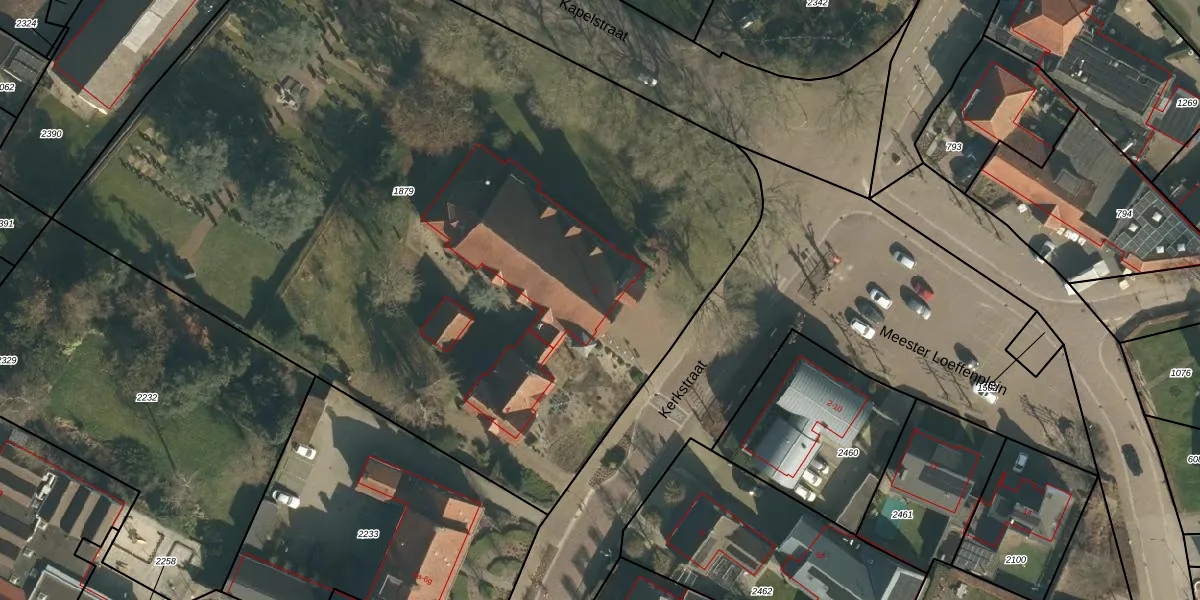 Kerkstraat 2 is gelegen op kadastraal perceel NTR00E1879. Deze kadastrale aanduiding is uniek en wordt gebruikt door het Kadaster om eigendomsrechten en andere zakelijke rechten vast te leggen. Het perceel maakt onderdeel uit van de kadastrale gemeente Nistelrode.