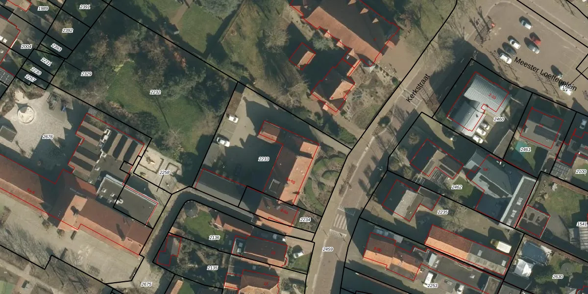 Kerkstraat 6-f is gelegen op kadastraal perceel NTR00E2233. Deze kadastrale aanduiding is uniek en wordt gebruikt door het Kadaster om eigendomsrechten en andere zakelijke rechten vast te leggen. Het perceel maakt onderdeel uit van de kadastrale gemeente Nistelrode.