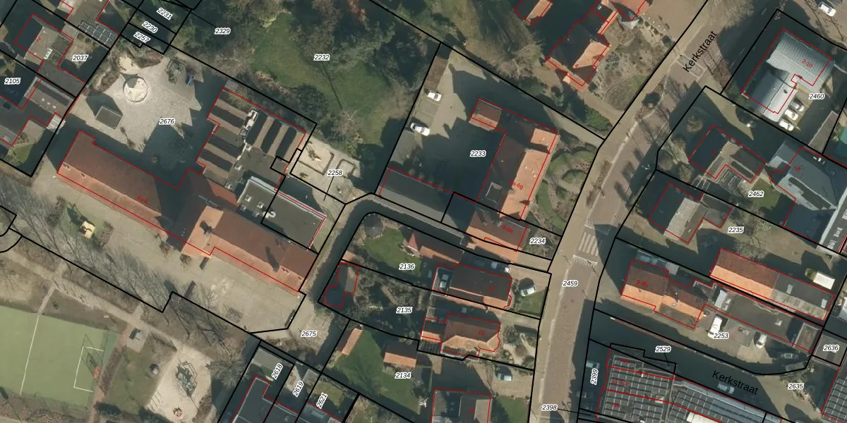 Het perceel waarop Kerkstraat 8-a staat heeft een oppervlakte van 1400 m². Dit is een zeer groot perceel. De perceeloppervlakte wordt geregistreerd door het Kadaster. Gedetailleerde informatie over de maten van dit perceel kunt u vinden in het rapport Kadastrale kaart met maatvoering van Kerkstraat 8-a.