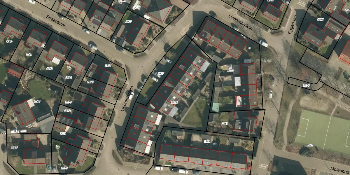 Het perceel waarop Liebregtsplein 26 staat heeft een oppervlakte van 1757 m². Dit is een zeer groot perceel. De perceeloppervlakte wordt geregistreerd door het Kadaster. Gedetailleerde informatie over de maten van dit perceel kunt u vinden in het rapport Kadastrale kaart met maatvoering van Liebregtsplein 26.