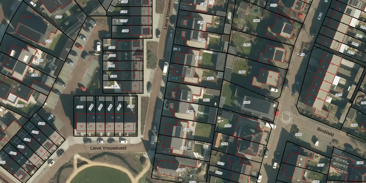 Het perceel waarop Lieve Vrouweveld 15 staat heeft een oppervlakte van 289 m². Dit is een middelgroot perceel. De perceeloppervlakte wordt geregistreerd door het Kadaster. Gedetailleerde informatie over de maten van dit perceel kunt u vinden in het rapport Kadastrale kaart met maatvoering van Lieve Vrouweveld 15.
