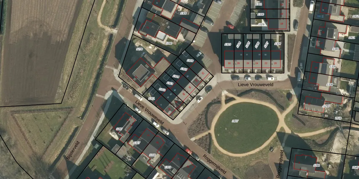 Het perceel waarop Lieve Vrouweveld 38 staat heeft een oppervlakte van 119 m². Dit is een middelgroot perceel. De perceeloppervlakte wordt geregistreerd door het Kadaster. Gedetailleerde informatie over de maten van dit perceel kunt u vinden in het rapport Kadastrale kaart met maatvoering van Lieve Vrouweveld 38.