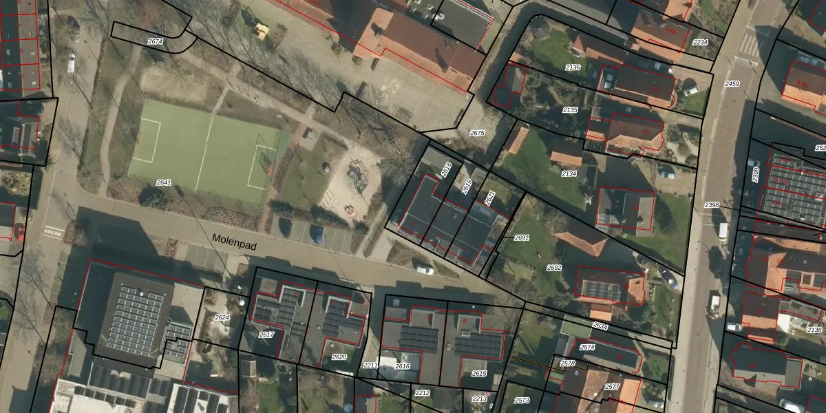 Het perceel waarop Molenpad 1 staat heeft een oppervlakte van 218 m². Dit is een middelgroot perceel. De perceeloppervlakte wordt geregistreerd door het Kadaster. Gedetailleerde informatie over de maten van dit perceel kunt u vinden in het rapport Kadastrale kaart met maatvoering van Molenpad 1.