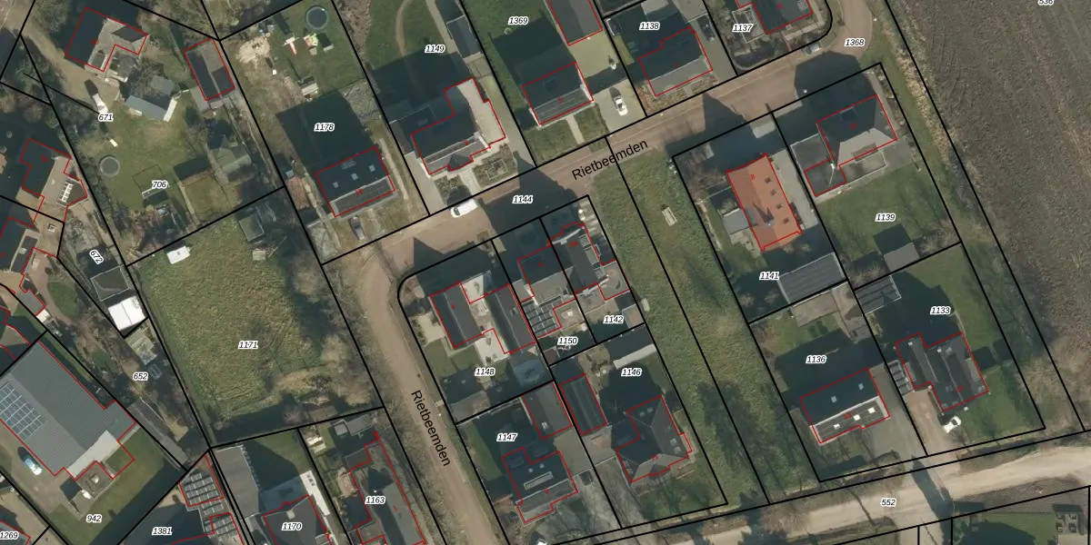 Rietbeemden 6 is gelegen op kadastraal perceel NTR00G1150. Deze kadastrale aanduiding is uniek en wordt gebruikt door het Kadaster om eigendomsrechten en andere zakelijke rechten vast te leggen. Het perceel maakt onderdeel uit van de kadastrale gemeente Nistelrode.