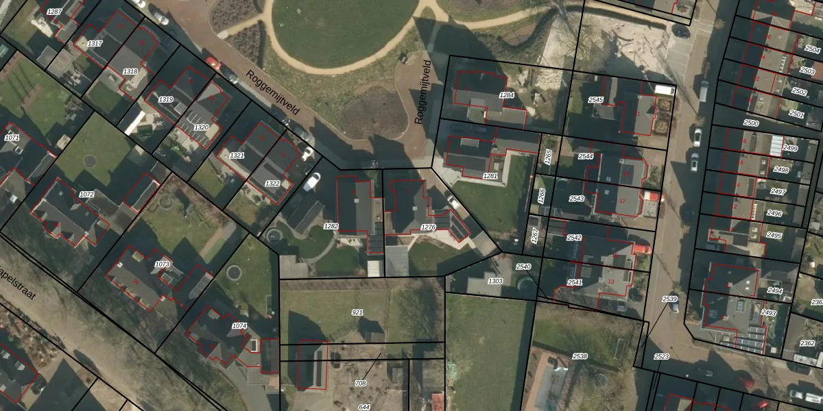 Het perceel waarop Roggemijtveld 7 staat heeft een oppervlakte van 543 m². Dit is een groot perceel. De perceeloppervlakte wordt geregistreerd door het Kadaster. Gedetailleerde informatie over de maten van dit perceel kunt u vinden in het rapport Kadastrale kaart met maatvoering van Roggemijtveld 7.