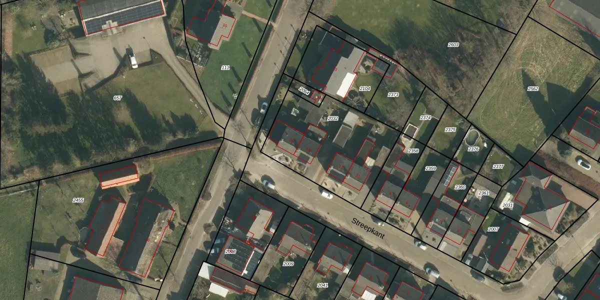 Streepkant 14 is gelegen op kadastraal perceel NTR00E2032. Deze kadastrale aanduiding is uniek en wordt gebruikt door het Kadaster om eigendomsrechten en andere zakelijke rechten vast te leggen. Het perceel maakt onderdeel uit van de kadastrale gemeente Nistelrode.
