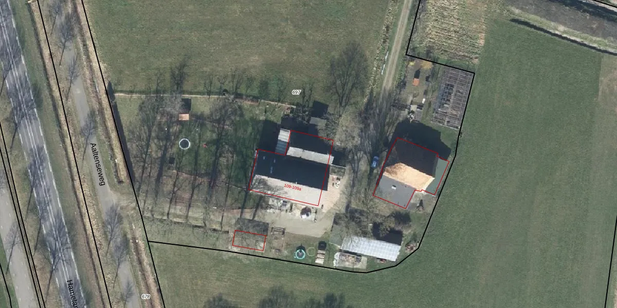 Aaltenseweg 109-a is gelegen op kadastraal perceel LTV00T697. Deze kadastrale aanduiding is uniek en wordt gebruikt door het Kadaster om eigendomsrechten en andere zakelijke rechten vast te leggen. Het perceel maakt onderdeel uit van de kadastrale gemeente Lichtenvoorde.