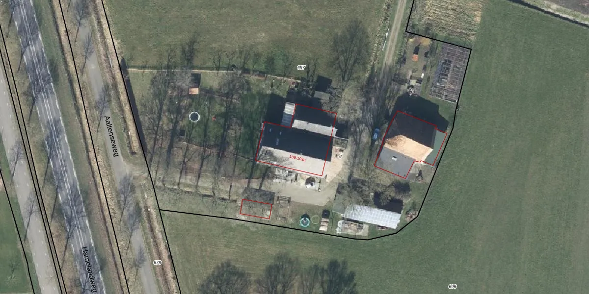 Aaltenseweg 109 is gelegen op kadastraal perceel LTV00T697. Deze kadastrale aanduiding is uniek en wordt gebruikt door het Kadaster om eigendomsrechten en andere zakelijke rechten vast te leggen. Het perceel maakt onderdeel uit van de kadastrale gemeente Lichtenvoorde.