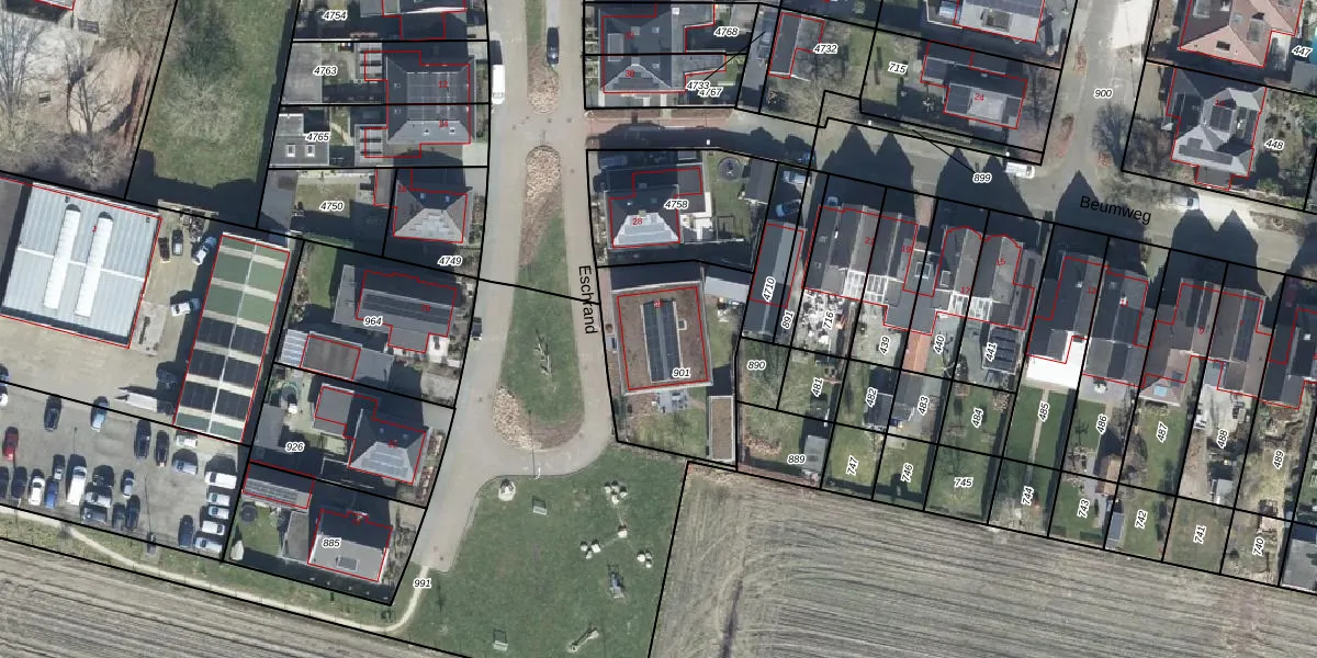 Het perceel waarop Eschrand 26 staat heeft een oppervlakte van 588 m². Dit is een groot perceel. De perceeloppervlakte wordt geregistreerd door het Kadaster. Gedetailleerde informatie over de maten van dit perceel kunt u vinden in het rapport Kadastrale kaart met maatvoering van Eschrand 26.