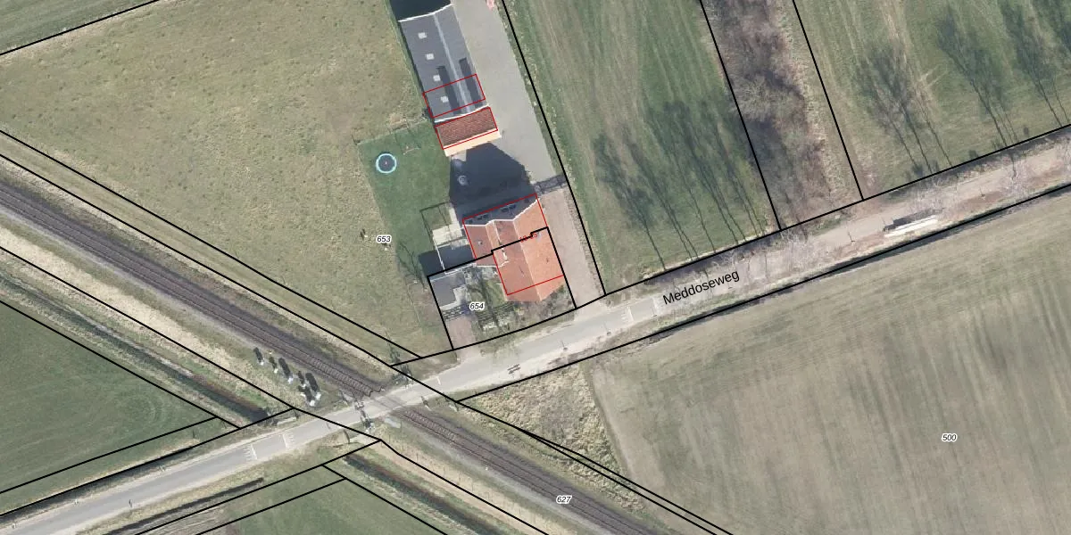 Meddoseweg 13 is gelegen op kadastraal perceel LTV00R654. Deze kadastrale aanduiding is uniek en wordt gebruikt door het Kadaster om eigendomsrechten en andere zakelijke rechten vast te leggen. Het perceel maakt onderdeel uit van de kadastrale gemeente Lichtenvoorde.