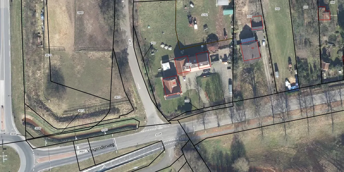 Vragenderweg 59 is gelegen op kadastraal perceel LTV00S1151. Deze kadastrale aanduiding is uniek en wordt gebruikt door het Kadaster om eigendomsrechten en andere zakelijke rechten vast te leggen. Het perceel maakt onderdeel uit van de kadastrale gemeente Lichtenvoorde.