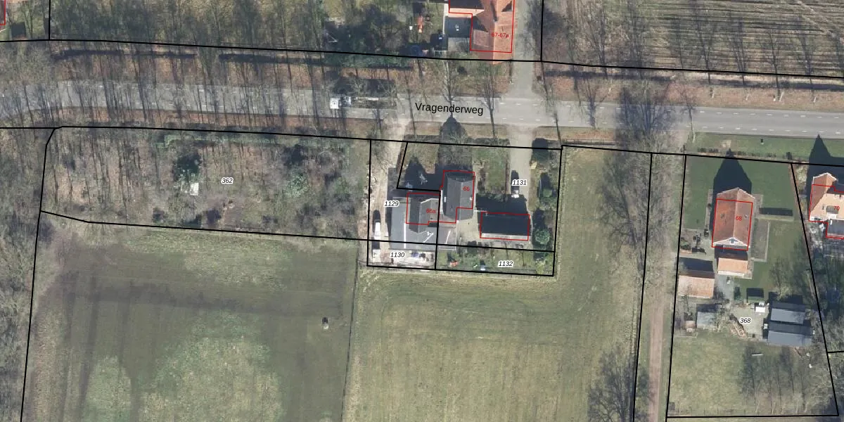 Vragenderweg 66-a is gelegen op kadastraal perceel LTV00S1129. Deze kadastrale aanduiding is uniek en wordt gebruikt door het Kadaster om eigendomsrechten en andere zakelijke rechten vast te leggen. Het perceel maakt onderdeel uit van de kadastrale gemeente Lichtenvoorde.