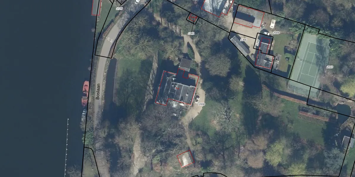 Het perceel waarop Boslaan 9-WON2 staat heeft een oppervlakte van 1,0 ha. Dit is een zeer groot perceel. De perceeloppervlakte wordt geregistreerd door het Kadaster. Gedetailleerde informatie over de maten van dit perceel kunt u vinden in het rapport Kadastrale kaart met maatvoering van Boslaan 9-WON2.
