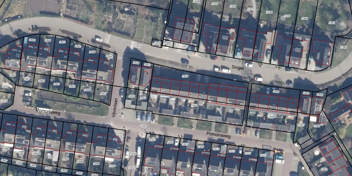 Het perceel waarop Singel 62 staat heeft een oppervlakte van 775 m². Dit is een groot perceel. De perceeloppervlakte wordt geregistreerd door het Kadaster. Gedetailleerde informatie over de maten van dit perceel kunt u vinden in het rapport Kadastrale kaart met maatvoering van Singel 62.