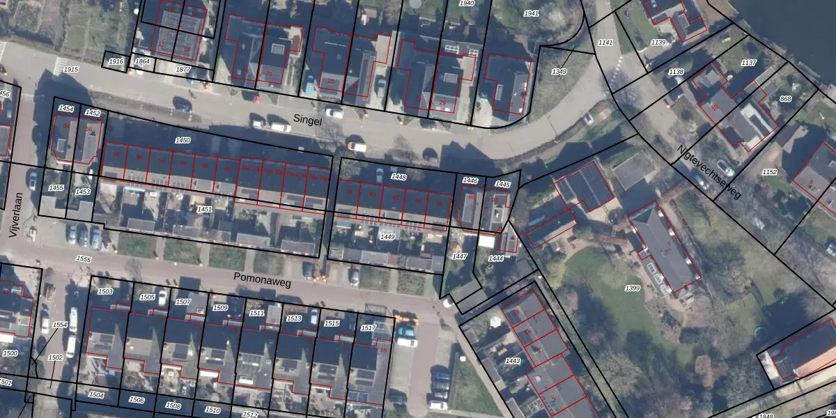 Het perceel waarop Singel 84 staat heeft een oppervlakte van 365 m². Dit is een groot perceel. De perceeloppervlakte wordt geregistreerd door het Kadaster. Gedetailleerde informatie over de maten van dit perceel kunt u vinden in het rapport Kadastrale kaart met maatvoering van Singel 84.