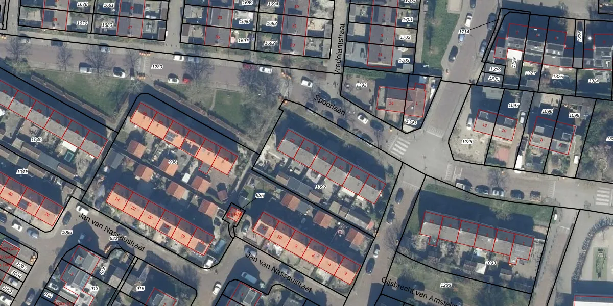 Het perceel waarop Spoorlaan 21 staat heeft een oppervlakte van 1184 m². Dit is een zeer groot perceel. De perceeloppervlakte wordt geregistreerd door het Kadaster. Gedetailleerde informatie over de maten van dit perceel kunt u vinden in het rapport Kadastrale kaart met maatvoering van Spoorlaan 21.