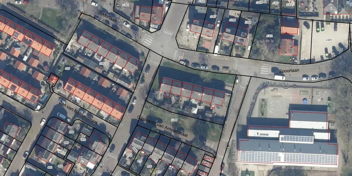 Het perceel waarop Spoorlaan 9 staat heeft een oppervlakte van 1243 m². Dit is een zeer groot perceel. De perceeloppervlakte wordt geregistreerd door het Kadaster. Gedetailleerde informatie over de maten van dit perceel kunt u vinden in het rapport Kadastrale kaart met maatvoering van Spoorlaan 9.