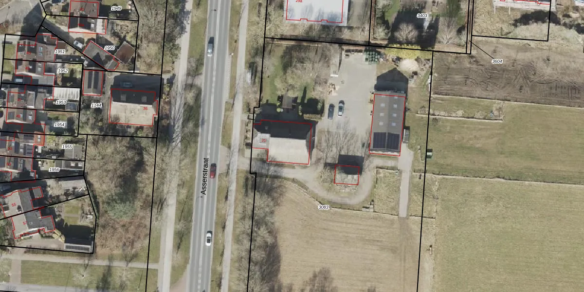 Asserstraat 31 is gelegen op kadastraal perceel VRI00T3083. Deze kadastrale aanduiding is uniek en wordt gebruikt door het Kadaster om eigendomsrechten en andere zakelijke rechten vast te leggen. Het perceel maakt onderdeel uit van de kadastrale gemeente Vries.