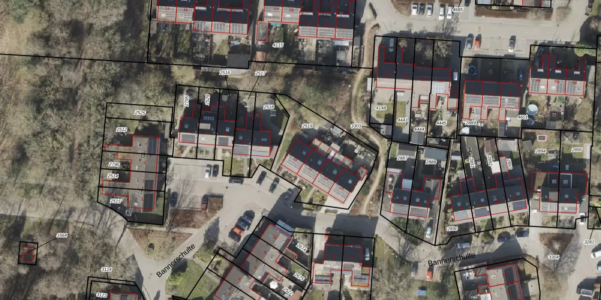 Het perceel waarop Bannerschulte 19 staat heeft een oppervlakte van 793 m². Dit is een groot perceel. De perceeloppervlakte wordt geregistreerd door het Kadaster. Gedetailleerde informatie over de maten van dit perceel kunt u vinden in het rapport Kadastrale kaart met maatvoering van Bannerschulte 19.