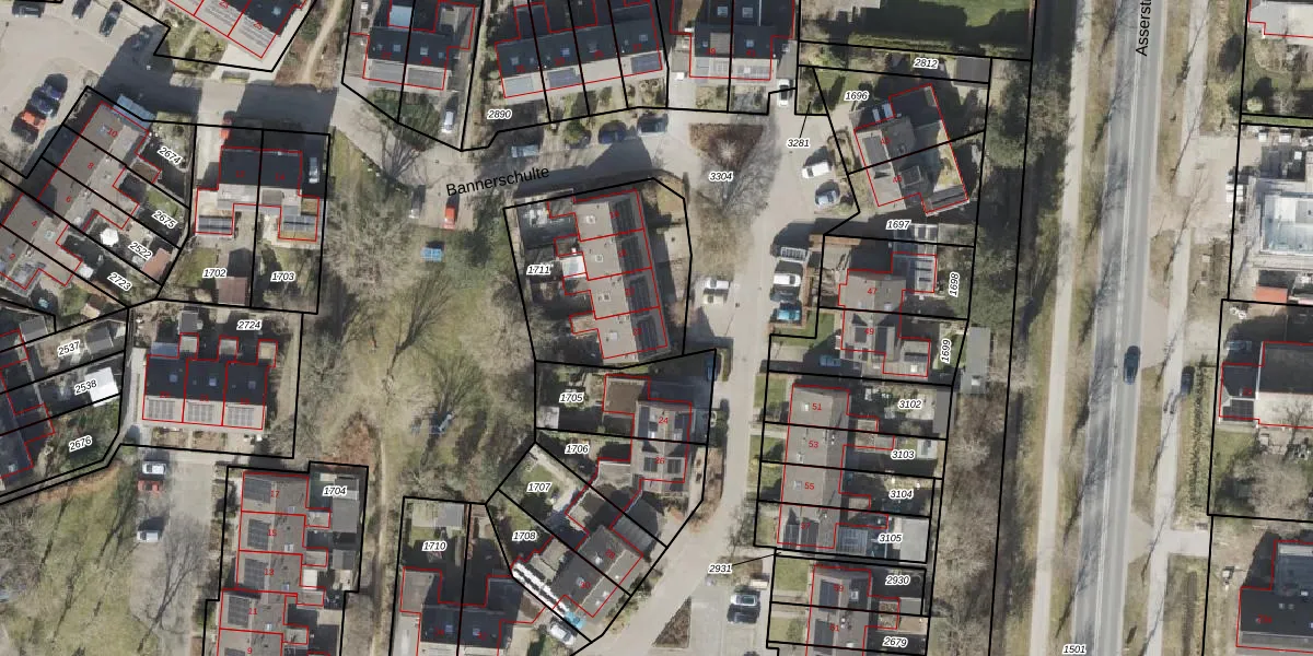 Het perceel waarop Bannerschulte 22 staat heeft een oppervlakte van 670 m². Dit is een groot perceel. De perceeloppervlakte wordt geregistreerd door het Kadaster. Gedetailleerde informatie over de maten van dit perceel kunt u vinden in het rapport Kadastrale kaart met maatvoering van Bannerschulte 22.