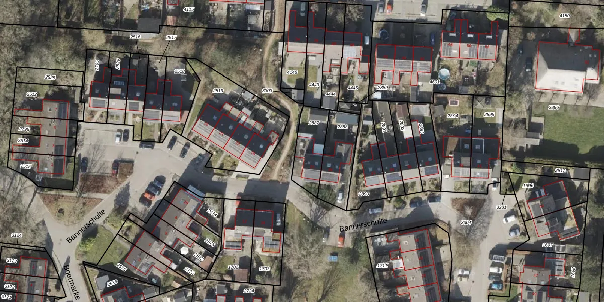 Het perceel waarop Bannerschulte 27 staat heeft een oppervlakte van 250 m². Dit is een middelgroot perceel. De perceeloppervlakte wordt geregistreerd door het Kadaster. Gedetailleerde informatie over de maten van dit perceel kunt u vinden in het rapport Kadastrale kaart met maatvoering van Bannerschulte 27.