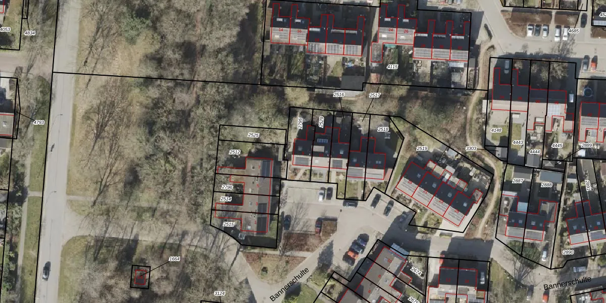 Het perceel waarop Bannerschulte 9 staat heeft een oppervlakte van 201 m². Dit is een middelgroot perceel. De perceeloppervlakte wordt geregistreerd door het Kadaster. Gedetailleerde informatie over de maten van dit perceel kunt u vinden in het rapport Kadastrale kaart met maatvoering van Bannerschulte 9.