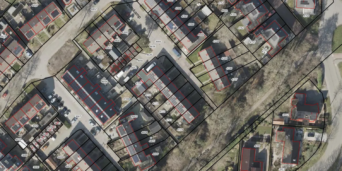 Gebruik de zoekbalk of klik op een perceel voor informatie over de adressen binnen dit perceel.