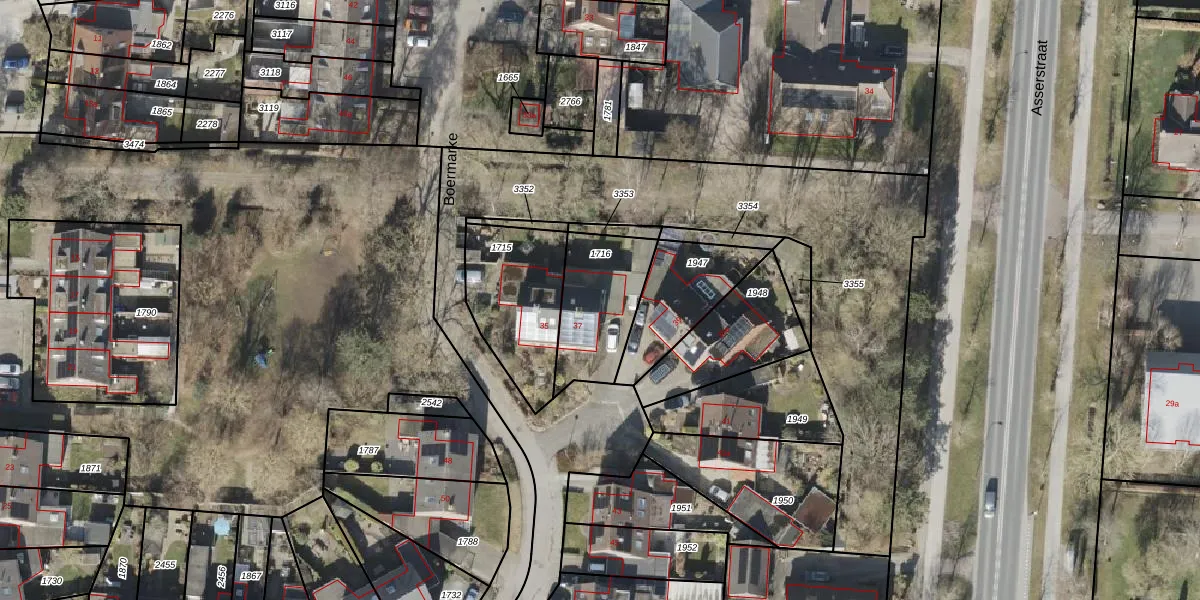Gebruik de zoekbalk of klik op een perceel voor informatie over de adressen binnen dit perceel.