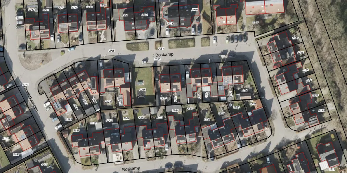 Het perceel waarop Boskamp 16 staat heeft een oppervlakte van 206 m². Dit is een middelgroot perceel. De perceeloppervlakte wordt geregistreerd door het Kadaster. Gedetailleerde informatie over de maten van dit perceel kunt u vinden in het rapport Kadastrale kaart met maatvoering van Boskamp 16.