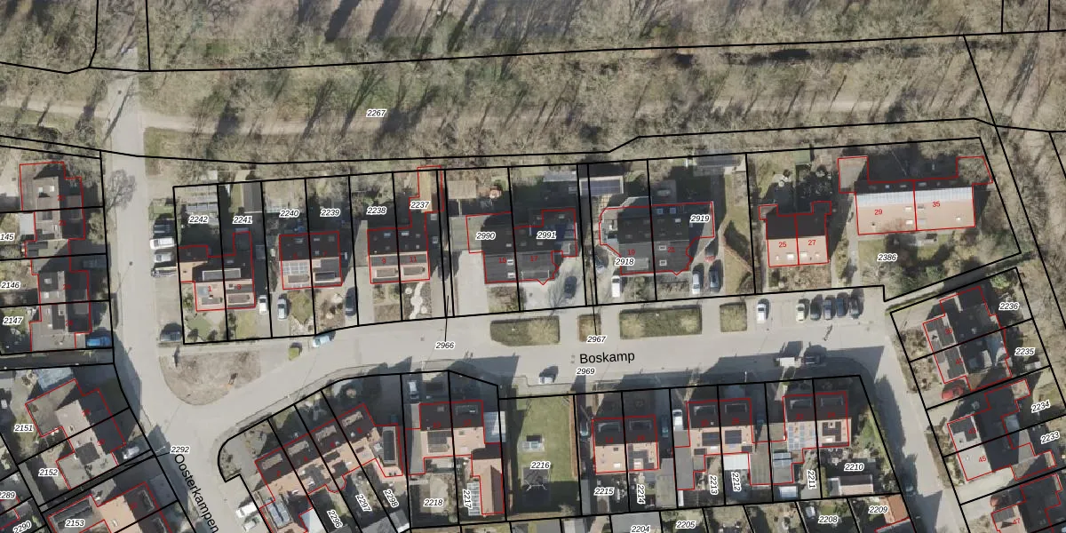 Het perceel waarop Boskamp 17 staat heeft een oppervlakte van 340 m². Dit is een groot perceel. De perceeloppervlakte wordt geregistreerd door het Kadaster. Gedetailleerde informatie over de maten van dit perceel kunt u vinden in het rapport Kadastrale kaart met maatvoering van Boskamp 17.