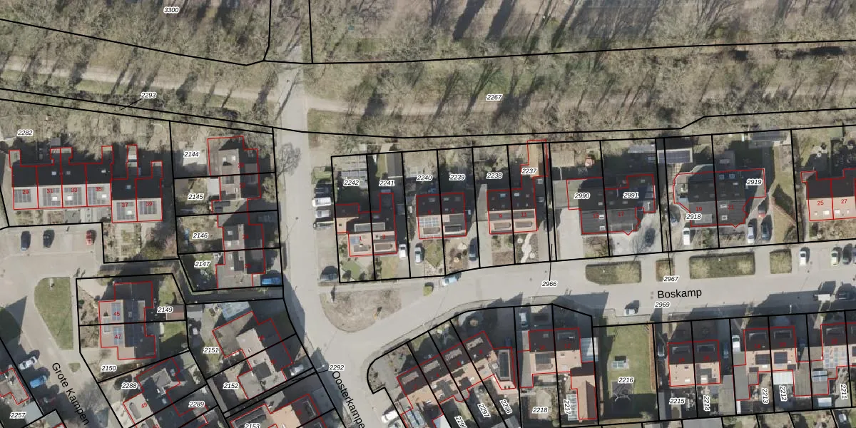Gebruik de zoekbalk of klik op een perceel voor informatie over de adressen binnen dit perceel.