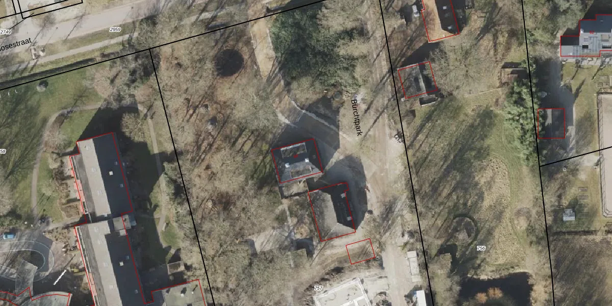 Het perceel waarop Burchtpark 2 staat heeft een oppervlakte van 1,2 ha. Dit is een zeer groot perceel. De perceeloppervlakte wordt geregistreerd door het Kadaster. Gedetailleerde informatie over de maten van dit perceel kunt u vinden in het rapport Kadastrale kaart met maatvoering van Burchtpark 2.