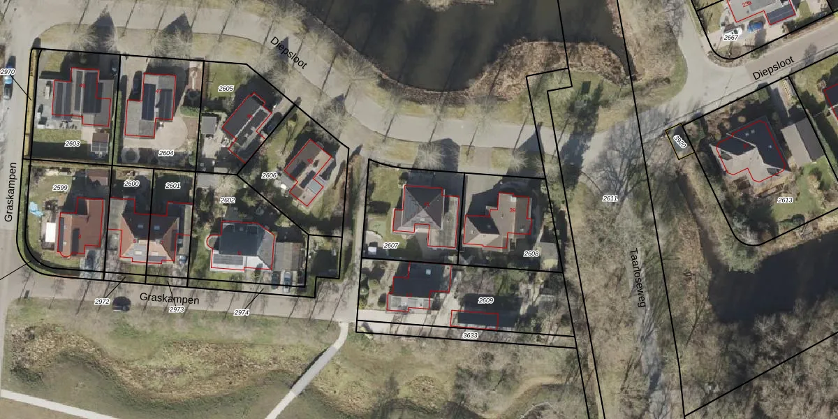 Het perceel waarop Diepsloot 41 staat heeft een oppervlakte van 511 m². Dit is een groot perceel. De perceeloppervlakte wordt geregistreerd door het Kadaster. Gedetailleerde informatie over de maten van dit perceel kunt u vinden in het rapport Kadastrale kaart met maatvoering van Diepsloot 41.