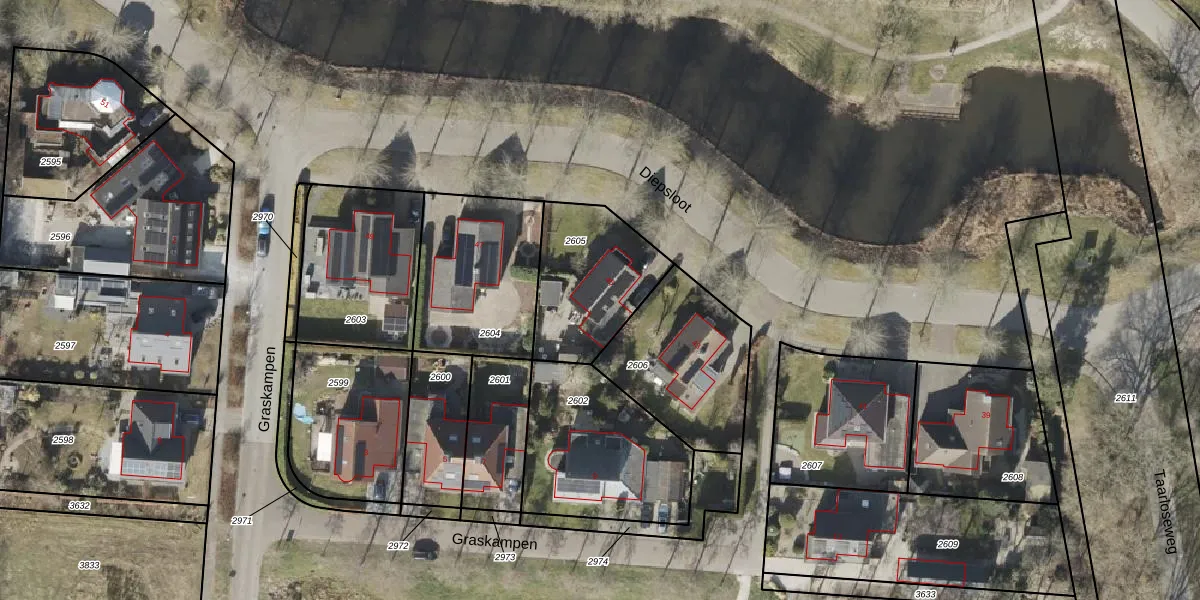 Het perceel waarop Diepsloot 45 staat heeft een oppervlakte van 429 m². Dit is een groot perceel. De perceeloppervlakte wordt geregistreerd door het Kadaster. Gedetailleerde informatie over de maten van dit perceel kunt u vinden in het rapport Kadastrale kaart met maatvoering van Diepsloot 45.