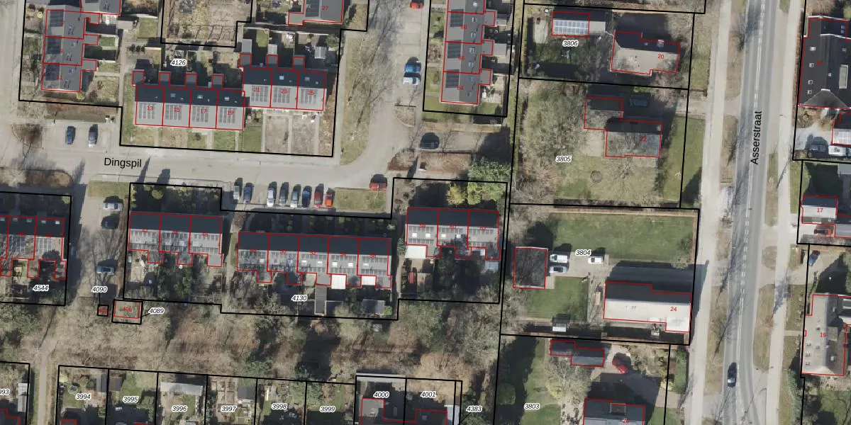 Het perceel waarop Dingspil 58 staat heeft een oppervlakte van 2323 m². Dit is een zeer groot perceel. De perceeloppervlakte wordt geregistreerd door het Kadaster. Gedetailleerde informatie over de maten van dit perceel kunt u vinden in het rapport Kadastrale kaart met maatvoering van Dingspil 58.