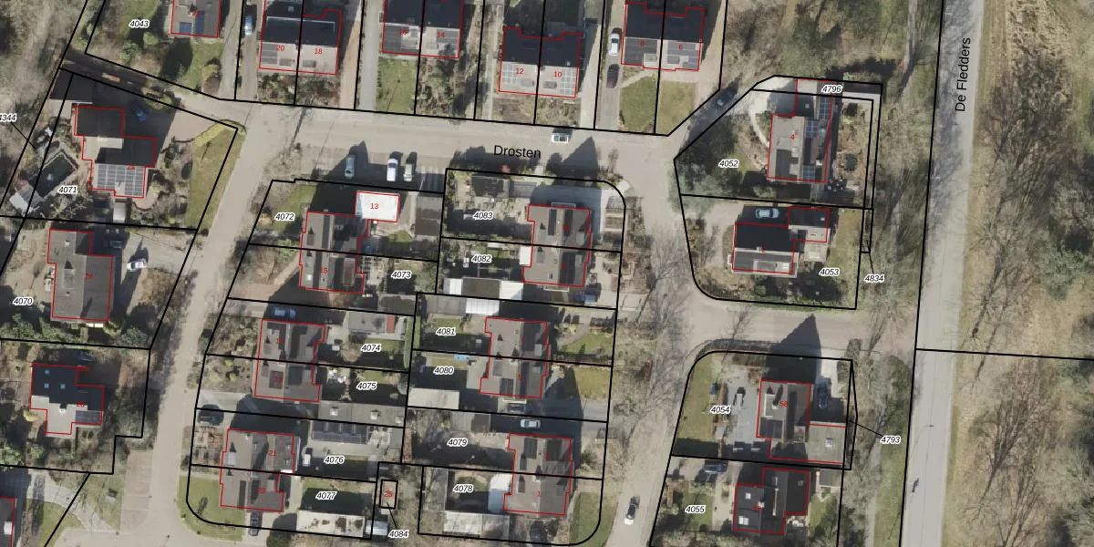 Drosten 9 is gelegen op kadastraal perceel VRI00P4082. Deze kadastrale aanduiding is uniek en wordt gebruikt door het Kadaster om eigendomsrechten en andere zakelijke rechten vast te leggen. Het perceel maakt onderdeel uit van de kadastrale gemeente Vries.