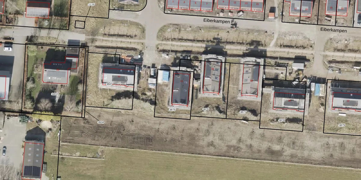 Het perceel waarop Eiberkampen 14 staat heeft een oppervlakte van 532 m². Dit is een groot perceel. De perceeloppervlakte wordt geregistreerd door het Kadaster. Gedetailleerde informatie over de maten van dit perceel kunt u vinden in het rapport Kadastrale kaart met maatvoering van Eiberkampen 14.