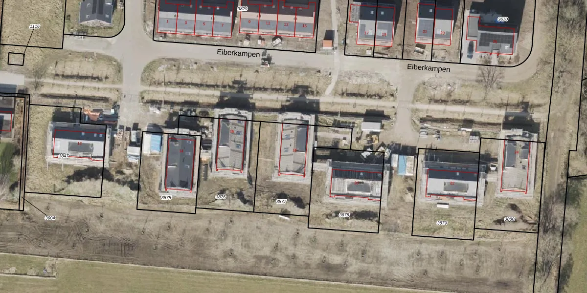 Het perceel waarop Eiberkampen 18 staat heeft een oppervlakte van 676 m². Dit is een groot perceel. De perceeloppervlakte wordt geregistreerd door het Kadaster. Gedetailleerde informatie over de maten van dit perceel kunt u vinden in het rapport Kadastrale kaart met maatvoering van Eiberkampen 18.
