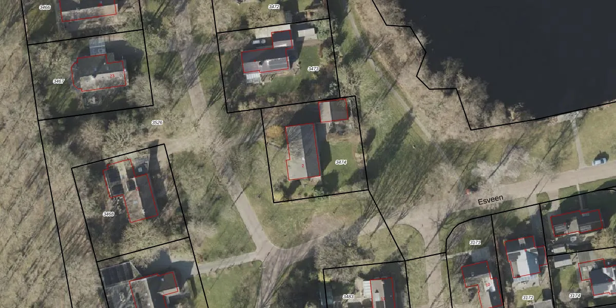 Het perceel waarop Esveen 2 staat heeft een oppervlakte van 959 m². Dit is een groot perceel. De perceeloppervlakte wordt geregistreerd door het Kadaster. Gedetailleerde informatie over de maten van dit perceel kunt u vinden in het rapport Kadastrale kaart met maatvoering van Esveen 2.