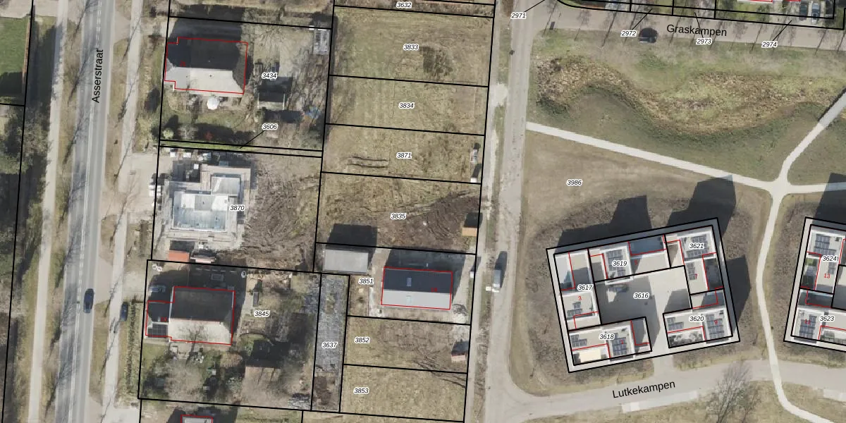Het perceel waarop Graskampen 14 staat heeft een oppervlakte van 636 m². Dit is een groot perceel. De perceeloppervlakte wordt geregistreerd door het Kadaster. Gedetailleerde informatie over de maten van dit perceel kunt u vinden in het rapport Kadastrale kaart met maatvoering van Graskampen 14.
