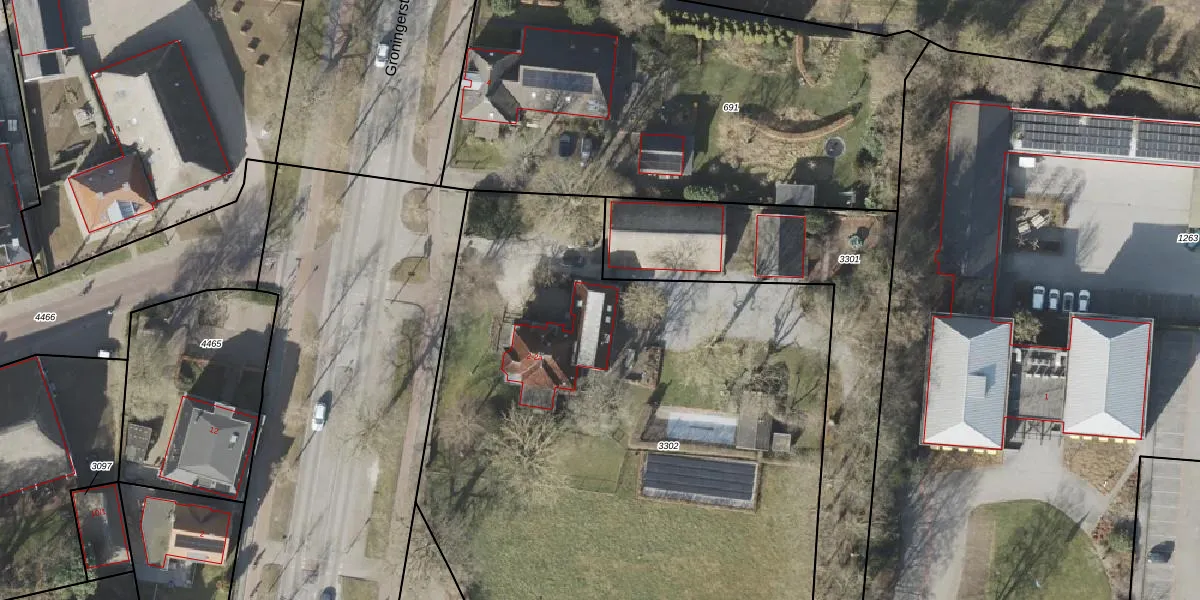 Het adres is gelegen op perceel 3302 in de sectie T en de kadastrale gemeente Vries. De kadastrale aanduiding is aldus VRI00-T-3302. De gemiddelde perceelgrootte in Vries is 8869,41 m². Dit perceel is kleiner: de perceeloppervlakte bedraagt 4365 m². Het kleinste perceel in de kadastrale gemeente is 1 m² groot. De grootste perceeloppervlakte is 53,3 ha. Op het perceel zijn 2 adressen aanwezig. In de Basisregistratie Kadaster (BRK) werden de grenzen van het perceel geregistreerd op 14-06-2011.