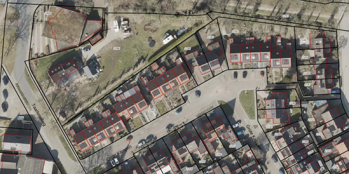 Het perceel waarop Grote Kampen 21 staat heeft een oppervlakte van 2057 m². Dit is een zeer groot perceel. De perceeloppervlakte wordt geregistreerd door het Kadaster. Gedetailleerde informatie over de maten van dit perceel kunt u vinden in het rapport Kadastrale kaart met maatvoering van Grote Kampen 21.