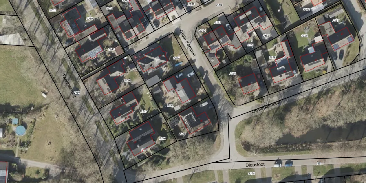 Gebruik de zoekbalk of klik op een perceel voor informatie over de adressen binnen dit perceel.