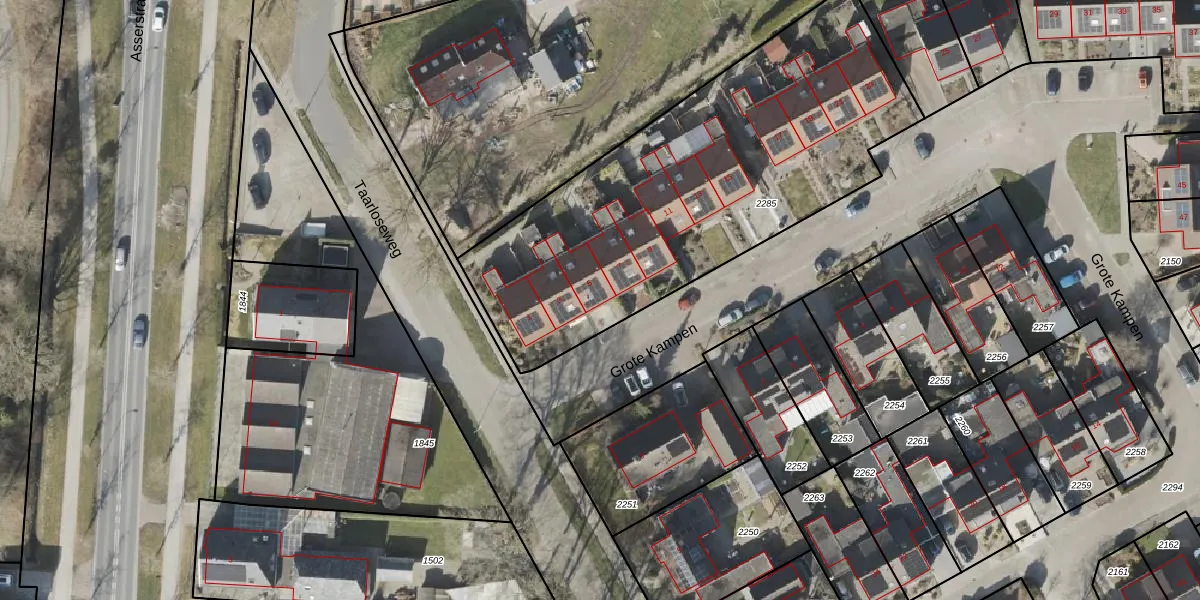 Het perceel waarop Grote Kampen 5 staat heeft een oppervlakte van 2057 m². Dit is een zeer groot perceel. De perceeloppervlakte wordt geregistreerd door het Kadaster. Gedetailleerde informatie over de maten van dit perceel kunt u vinden in het rapport Kadastrale kaart met maatvoering van Grote Kampen 5.