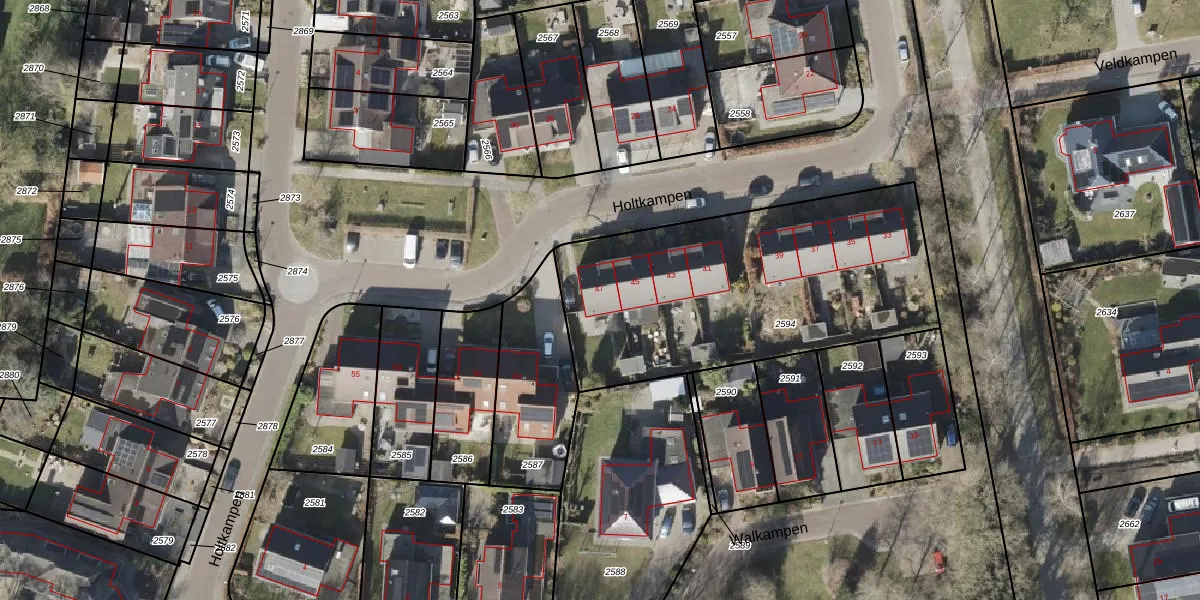 Holtkampen 47 is gelegen op kadastraal perceel VRI00T2594. Deze kadastrale aanduiding is uniek en wordt gebruikt door het Kadaster om eigendomsrechten en andere zakelijke rechten vast te leggen. Het perceel maakt onderdeel uit van de kadastrale gemeente Vries.